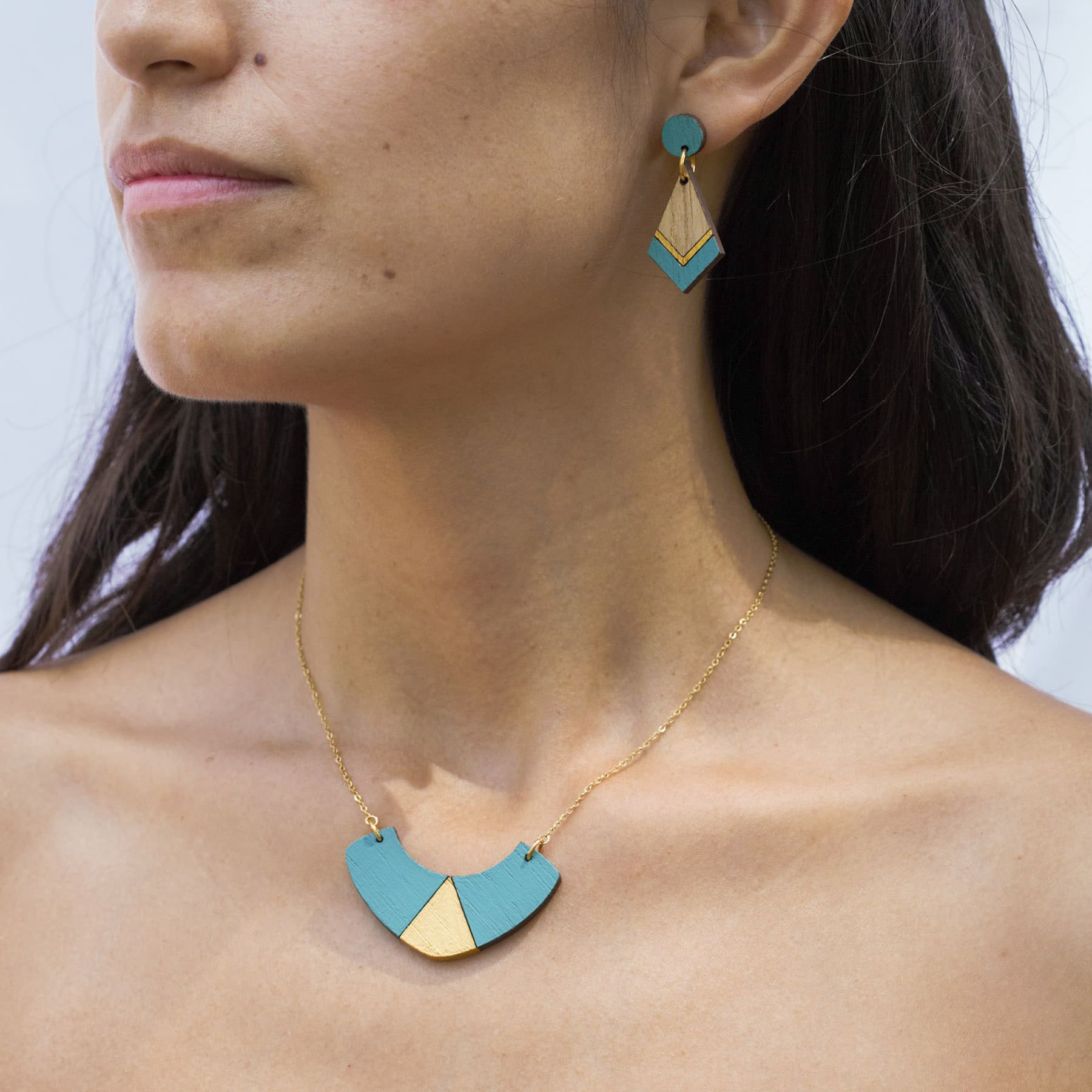 Los pendientes Frida, ligeros y muy cómodos, están fabricados artesanalmente en madera de roble sostenible y pintados a mano en dos combinaciones preciosas: